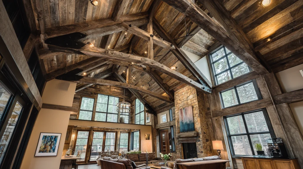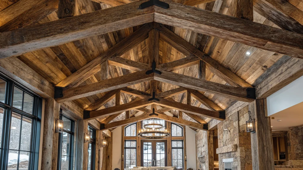 If you compare a hammer beam truss vs a common roof truss, you’ll see how the timber system becomes the aesthetic element rather than hidden behind drywall.